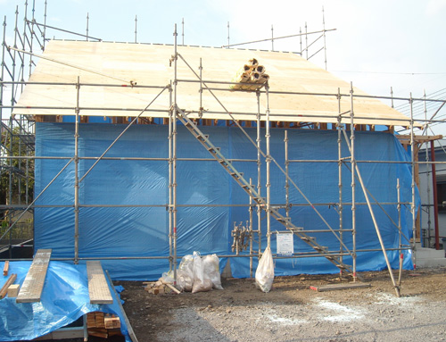 住宅地なので、特に電線等に注意して慎重に作業を進めます。